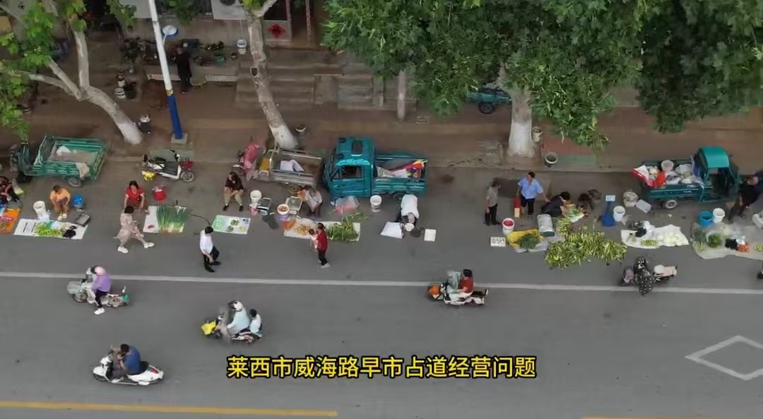莱西市威海路占路经营乱象难解,执法清理流于形式