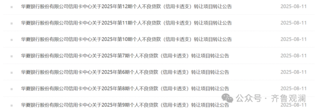 日前,华夏银行发布公告称,该行信用卡中心公开转让2025年第6期~第12期个人不良贷款(信用卡透支)项目。上述7个资产包未偿本金总额合计44.83亿元,未偿利息总额合计63.05亿元,未偿本息总额合计107.89亿元;共涉及借款人户数22.90万户,户均欠款约4.71万元(含利息)。